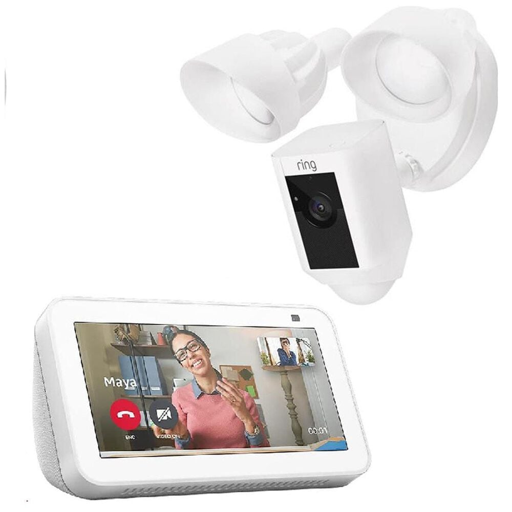 Ring Floodlight Cam Wired Plus In White Amazon Echo Show 5 Smart Display With Alexa And 2 Mp Camera In Glacier White 2nd Generation Nebraska Furniture Mart